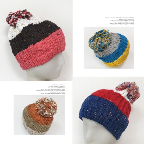 - B1116 겨울 삼색니트비니 방울털모자