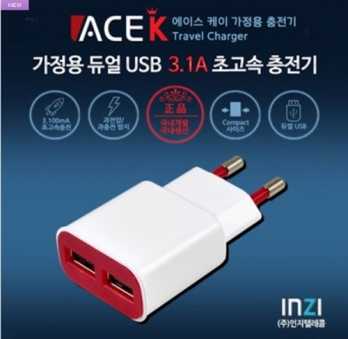 - 인지 에이스k 투포트 듀얼 가정용충전기 3.1A