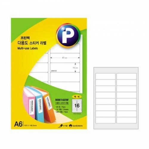 - 프린텍)다용도스티커라벨(MM160W_20매_백색)-갑(15권입)