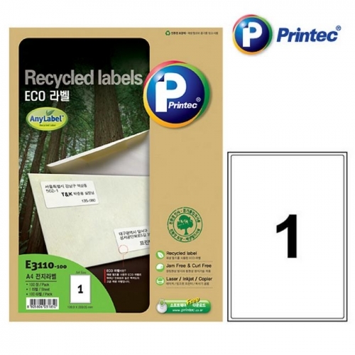 - 친환경라벨(E3110 100매 1칸 프린텍)