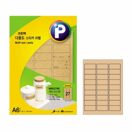 - 프린텍)다용도스티커라벨(MM270K 20매 크라프트) 다용도스티커라벨
