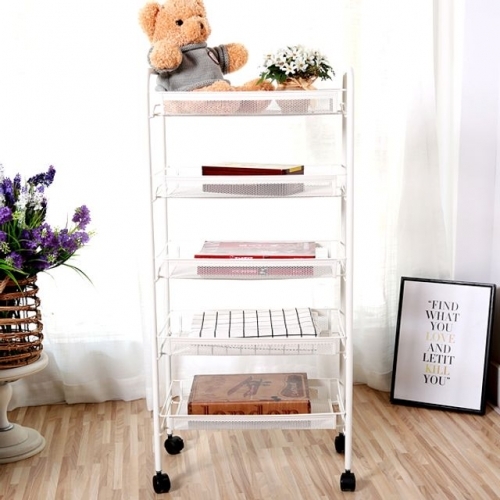 다용도 이동식 철제선반 5단 화이트