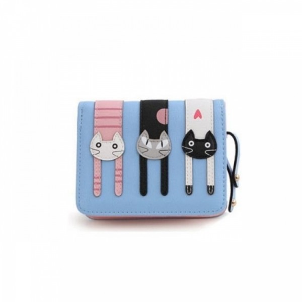 귀여운 3고양이 인조PU 12CM 스카이 고양이 반지갑