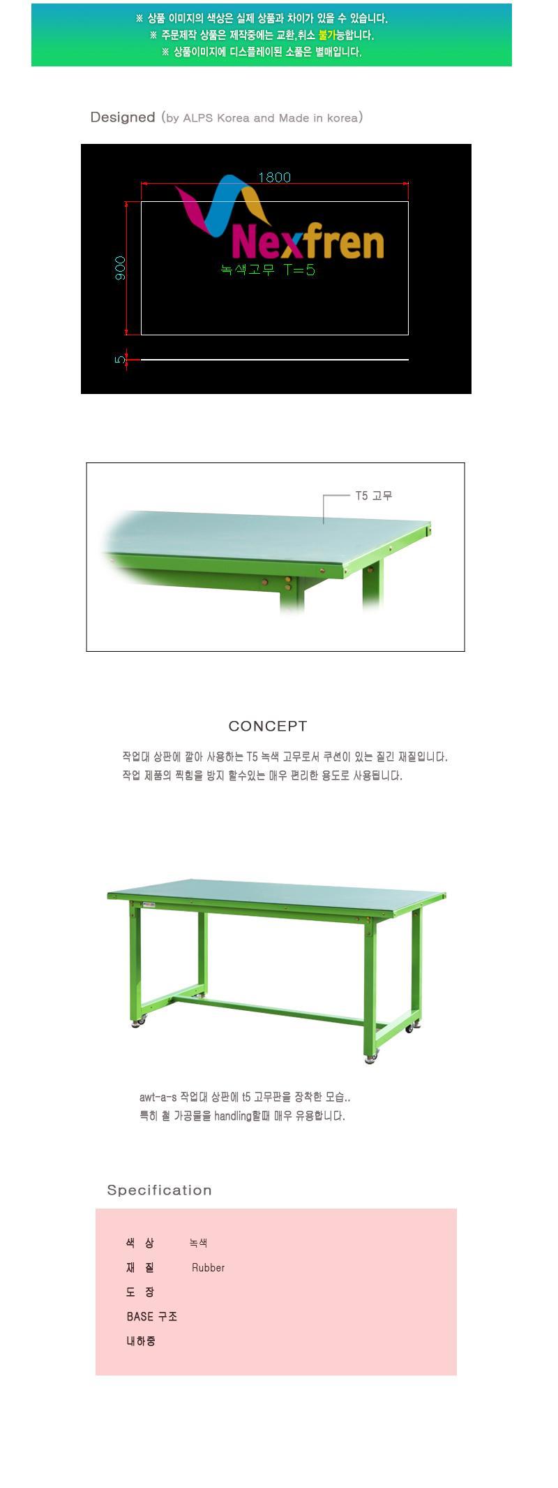 | AWT-T5 고무매트 | 1800x900xT5 | AWT 상판 고무매트 | 1EA | 현재 보고 계신 상품 |
