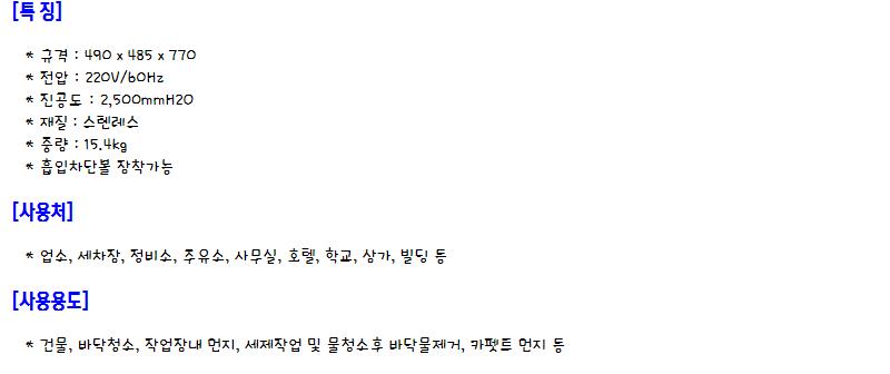 | 품명 | 업무용 청소기(1모터)-스텐 | ||