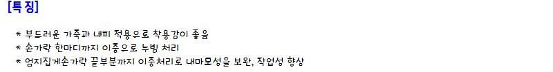 | 품명 | 알곤장갑 | ||