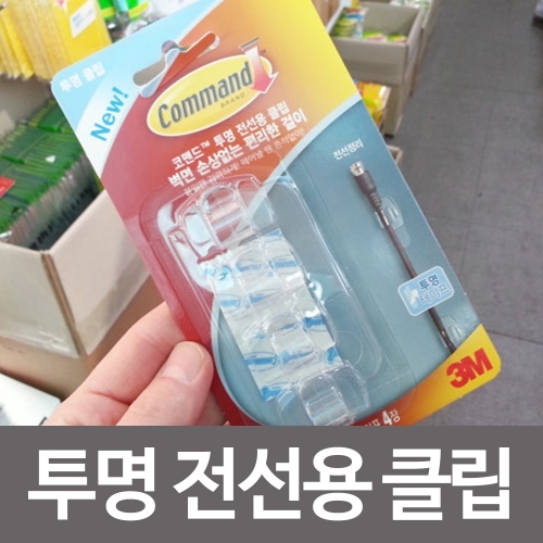 3M 코맨드 투명 전선용 클립 17017 전선정리 벽걸이 투명테이프