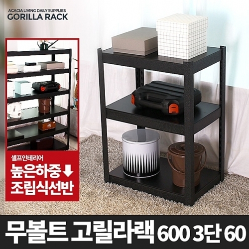 고릴라랙 600 3단 60-메탈 앵글 선반 무볼트선반 조립식 철제선반